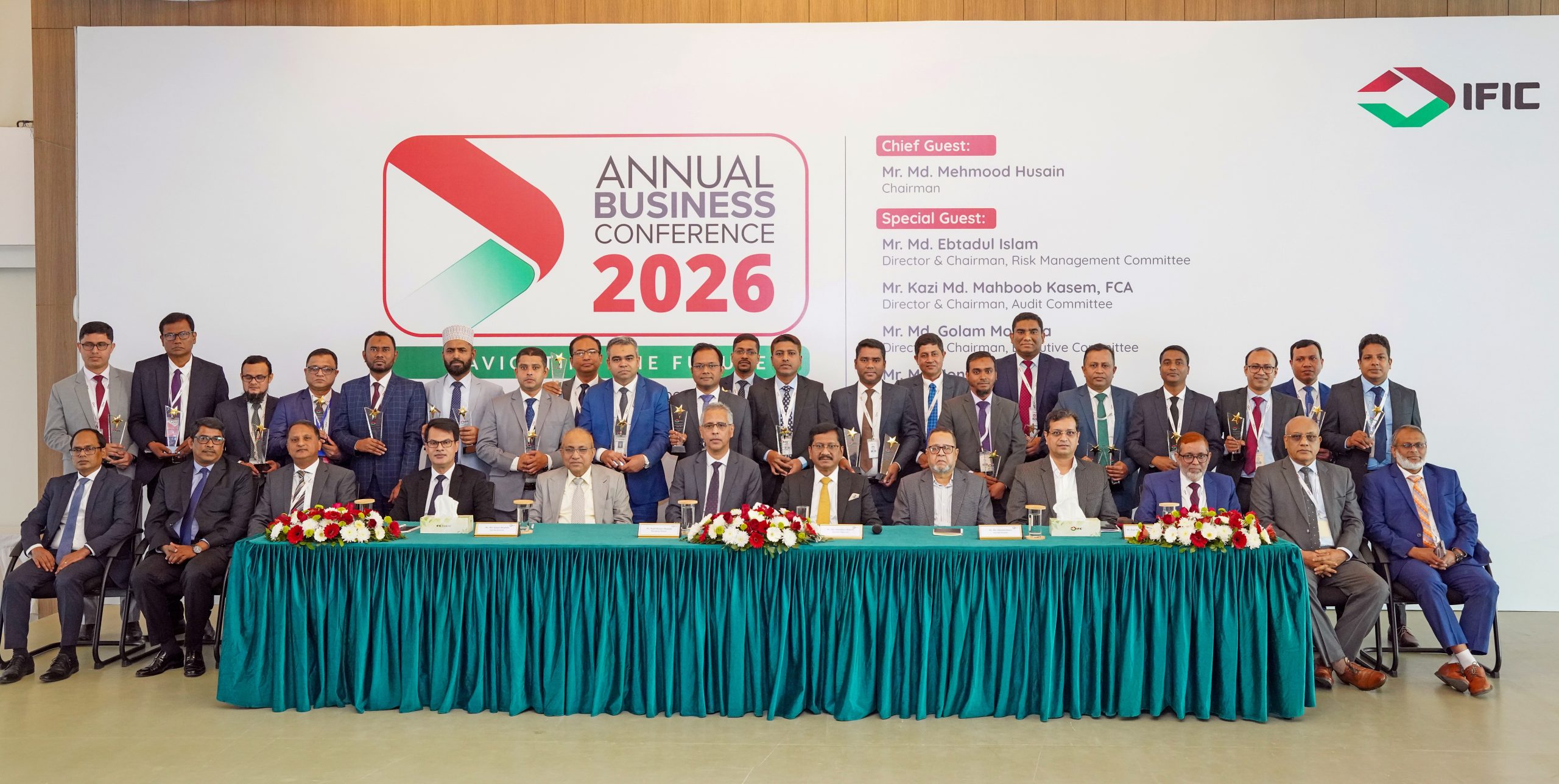 আজকের পুঁজিবাজার:শনিবার (১০ জানুয়ারি ২০২৬) আইএফআইসি টাওয়ারের মাল্টিপারপাস হলে অনুষ্ঠিত হয়েছে ‘আইএফআইসি ব্যাংক পিএলসি বার্ষিক ব্যবসায়িক সম্মেলন-২০২৬’। ব্যাংকের পরিচালনা পর্ষদের চেয়ারম্যান মোঃ মেহমুদ হোসেন অনুষ্ঠানে প্রধান অতিথি হিসেবে উপস্থিত ছিলেন। ব্যাংকের ব্যবস্থাপনা পরিচালক জনাব সৈয়দ মনসুর মোস্তফার সভাপতিত্বে অনুষ্ঠিত এই সম্মেলনে বিগত বছরের সাফল্য পর্যালোচনা এবং নতুন বছরের কৌশলগত লক্ষ্যমাত্রা নির্ধারণ করা হয়।