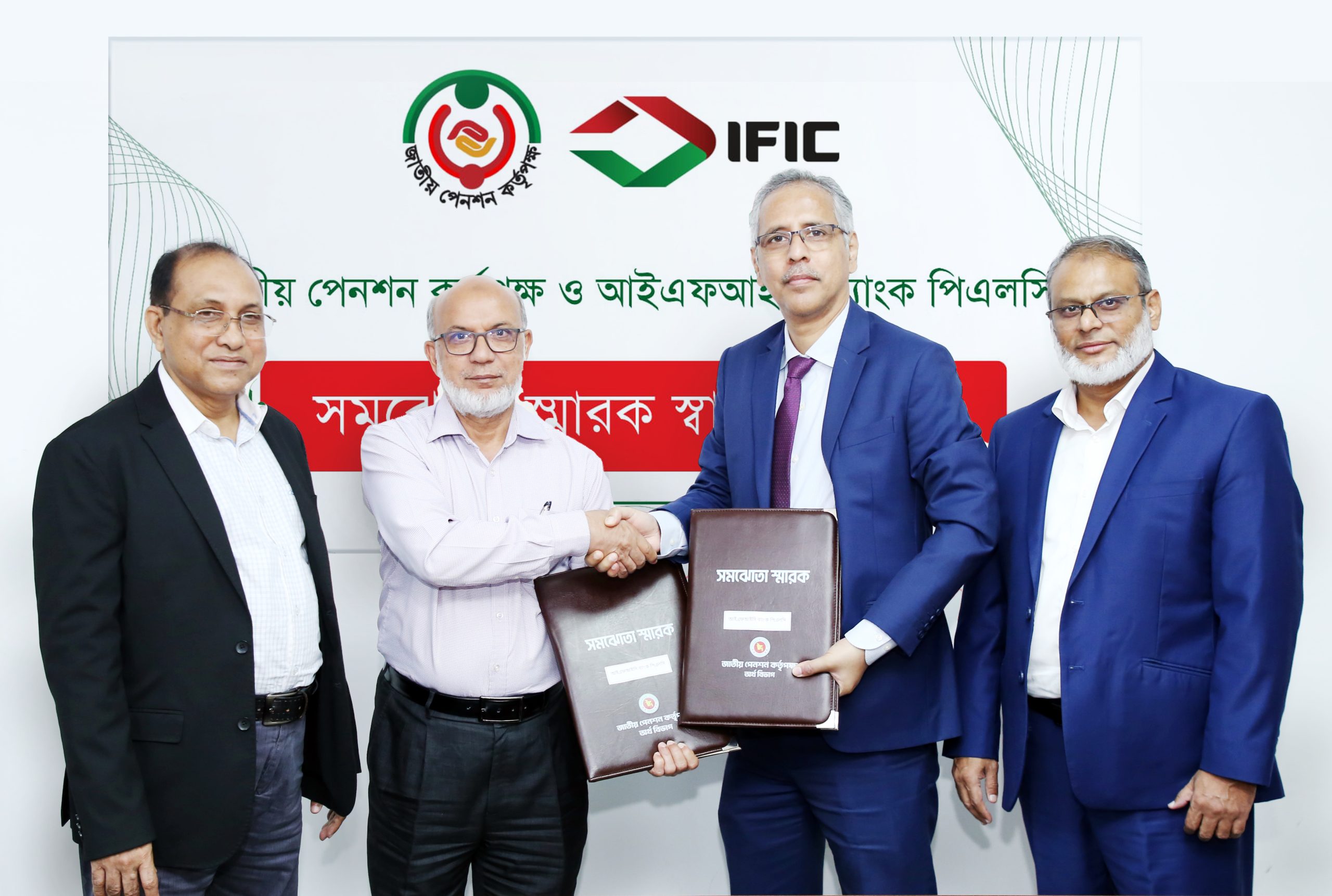 জাতীয় পেনশন কর্তৃপক্ষের নির্বাহী চেয়ারম্যান জনাব মো. মহিউদ্দীন খান এবং আইএফআইসি ব্যাংক পিএলসি এর ব্যবস্থাপনা পরিচালক জনাব সৈয়দ মনসুর মোস্তফা সমঝোতা স্মারকটি স্বাক্ষর ও বিনিময় করেন। এ সময় অনুষ্ঠানে জনাব মো. গোলাম মোস্তফা, সদস্য, অর্থ ব্যবস্থাপনা, জাতীয় পেনশন কর্তৃপক্ষ এবং আইএফআইসি ব্যাংক পিএলসি'র উপব্যবস্থাপনা পরিচালক জনাব মো. মনিতুর রহমান উপস্থিত ছিলেন।