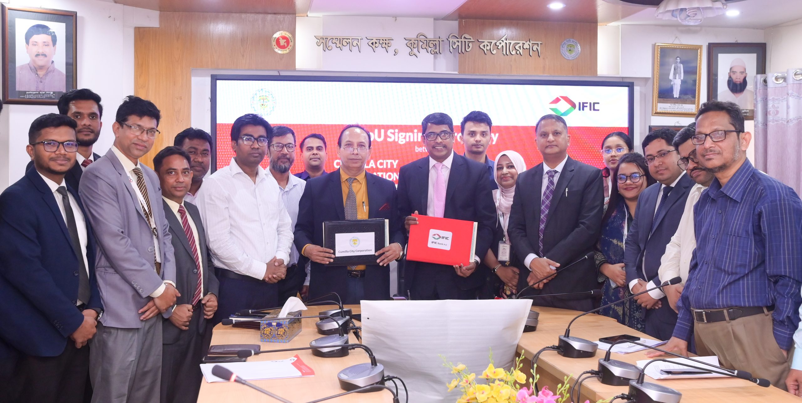 গত ০৩ মার্চ ২০২৬, মঙ্গলবার, কুমিল্লা সিটি কর্পোরেশনের অতীন্দ্র মোহন রায় কনফারেন্স রুমে আয়োজিত এক অনুষ্ঠানে আইএফআইসি ব্যাংক এর উপ-ব্যবস্থাপনা পরিচালক ও চিফ ক্রেডিট অফিসার জনাব মোঃ রফিকুল ইসলাম এর উপস্থিতিতে ব্যাংকের পক্ষে সমঝোতা স্মারকে স্বাক্ষর করেন চিফ অব ব্রাঞ্চ বিজনেস জনাব হেলাল আহমেদ এবং কুমিল্লা সিটি কর্পোরেশনের পক্ষে স্বাক্ষর করেন প্রতিষ্ঠানটির সুযোগ্য প্রশাসক এবং গণপ্রজাতন্ত্রী বাংলাদেশ সরকারের অরিতিক্ত সচিব জনাব মোঃ শাহ আলম।