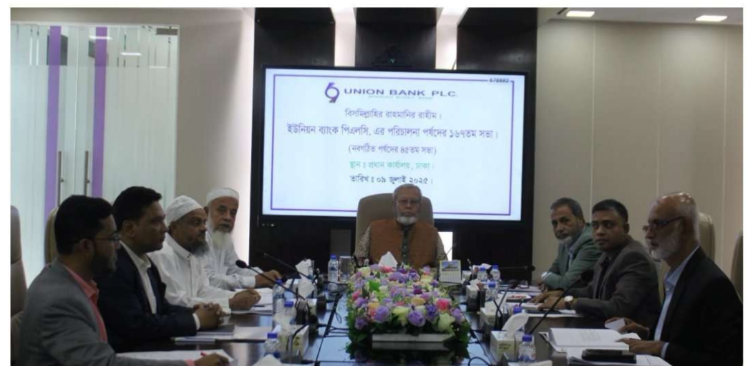 আজকের পুঁজিবাজার:০৯ জুলাই, ২০২৫ তারিখে ইউনিয়ন ব্যাংক পিএলসি, এর নবগঠিত পরিচালনা পর্ষদের ৪৫তম সভা ব্যাংকের প্রধান কার্যালয়, গুলশান-১, ঢাকায় অনুষ্ঠিত হয়। সভায় সভাপতিত্ব করেন ব্যাংকের পরিচালনা পর্ষদের সম্মানিত চেয়ারম্যান জনাব মুঃ ফরীদ উদ্দীন আহমদ। সভায় পর্ষদের ঝুঁকি ব্যবস্থাপনা কমিটির চেয়ারম্যান জনাব মোঃ হুমায়ুন কবীর, নিরীক্ষা কমিটির চেয়ারম্যান জনাব শেখ জাহিদুল ইসলাম, এফসিএ, স্বতন্ত্র পরিচালক ড. শহিদুল ইসলাম জাহীদ, জনাব মোহাম্মদ সাইফুল আলম এবং ব্যাংকের ব্যবস্থাপনা পরিচালক ও সিইও জনাব মোঃ হুমায়ুন কবির উপস্থিত ছিলেন। এছাড়াও উপ-ব্যবস্থাপনা পরিচালক জনাব মোহাম্মদ ইকবাল কার্যপোলক্ষ্যে সভায় যোগদান করেন। সভায় ব্যাংকের ব্যবসা বাণিজ্য, আমানত ও রেমিট্যান্স সংগ্রহ বৃদ্ধি এবং বিনিয়োগ আদায়ে বিশেষ গুরুত্বারোপ করা হয়।