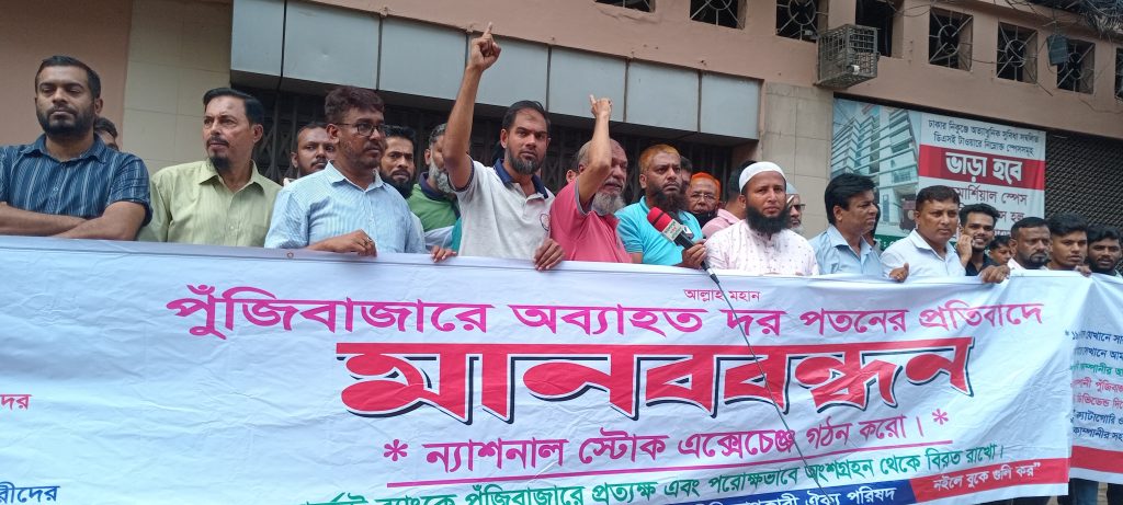 বিনিয়োগকারীরা বলেন, মার্কেট বর্তমানে যে পর্যায়ে নিয়েছে সে পর্যায় থেকে মার্কেটকে উত্তোলন করতে হবে। তারা বলেন, কোন কোম্পানি যদি ডিভিডেন্ড দিতে ব্যর্থ হতো সেই কোম্পানি জেড ক্যাটাগরিতে চলে যেত। কিন্তু বর্তমান চেয়ারম্যান কিছু কোম্পানিকে জেড ক্যাটাগরিতে নিয়ে মার্কেটকে ধ্বংস করে দিয়েছে। এখন আমাদের মূল দাবি এই অপদার্থ, অথর্ব, অজ্ঞানী ও বিবেকহীন এই মাকসুদের পদত্যাগ চাই। এই লোকটা কোন কথা যানে না, সে যেনতেনভাবে সিদ্ধান্ত নেয়। এই লোকটার ভুল সিদ্ধান্তের কারণে আমরা পথে বসে গেছি। তারা আরো বলেন, এই অপদার্থ মাকসুদের পদত্যাগ না হওয়া পর্যন্ত বাড়ি ফিরে যাবো না।