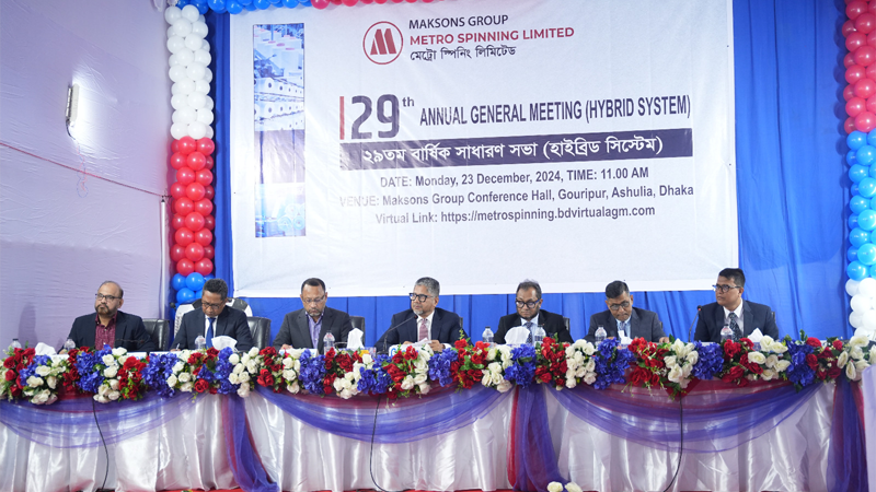 আজকের পুঁজিবাজার:পুঁজিবাজারের তালিকাভুক্ত কোম্পানি মেট্রো স্পিনিং মিলস লিমিটেডের ২৯তম বার্ষিক সাধারন সভা অনুষ্ঠিত হয়েছে। সোমবার (২৩ ডিসেম্বর) হাইব্রিড মাধ্যমে অনুষ্ঠিত এ সভায় কোম্পানির চেয়ারম্যান মোহাম্মদ আলী খোকন এর সভাপতিত্বে অনুষ্ঠিত এই সভায় পরিচালক পর্ষদের সদস্যগনসহ বহু শেয়ারহোল্ডার স্বশরীরে ও অনলাইনে সংযুক্ত ছিলেন।